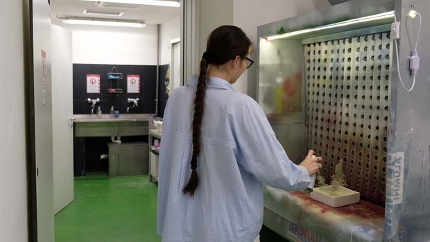 - una cabina di verniciatura per l’uso di vernici e colle spray, con una superficie aspirante di un metro quadro e un piano di lavoro di 100×50 cm;